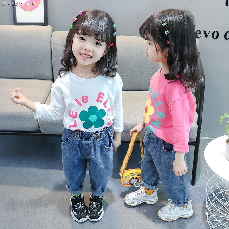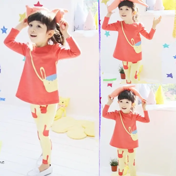 Quần Ao Be Gai Mua Thu Ao Thun Dai Tay Quần 2 Cai Bộ Quần