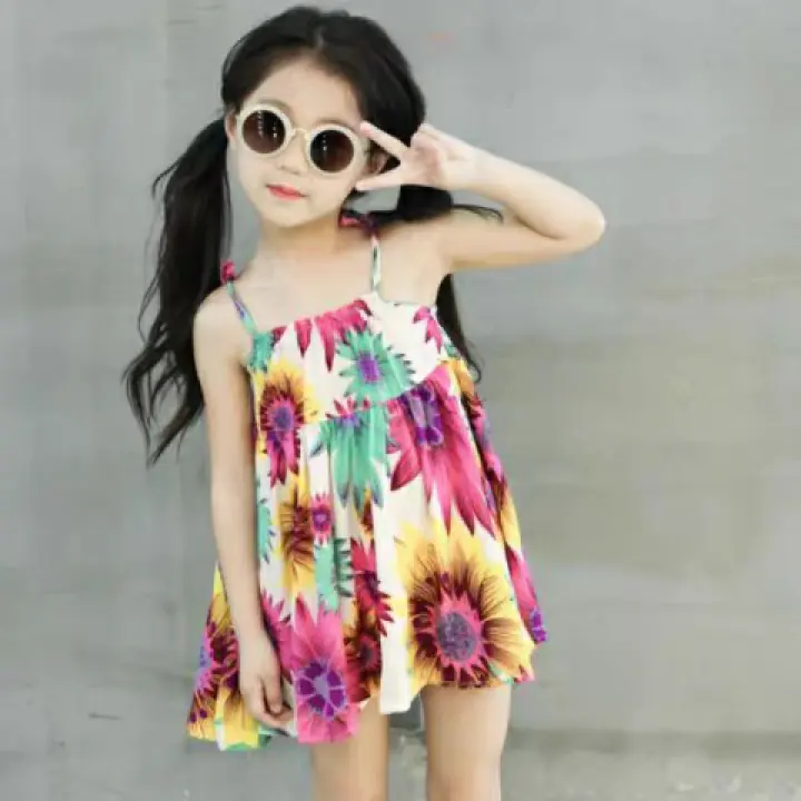 đầm 2 Day Hoa Nền Be Gai Thời Trang Trẻ Em Lazada Vn