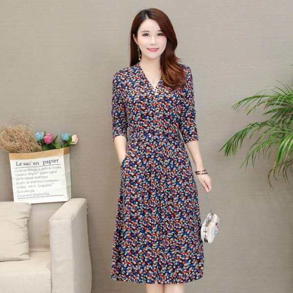 Giảm 66 Trung Nien Quần Ao Phụ Nữ Trung Tuổi Vay Liền 2019 Mẫu Mới Dai Tay đầu Gối Mỏng Mỏng Thời Trang Hoang Da Khi Cổ Vay