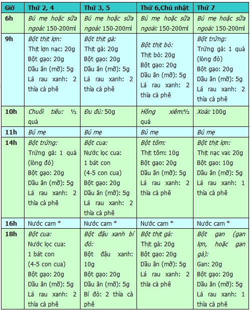 Thực đơn ăn Dặm Cho Be 9 Thang 4 Tuần Bibabo Vn