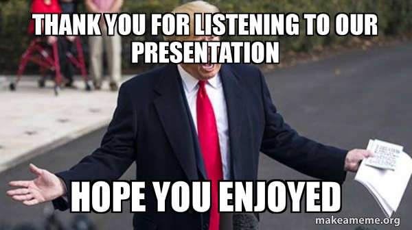 Thank You For Listening To My Presentation Now You Can Clap And If You Have Any Questions My Friend Google Will Answer Them Donald Trump Says Make A Meme