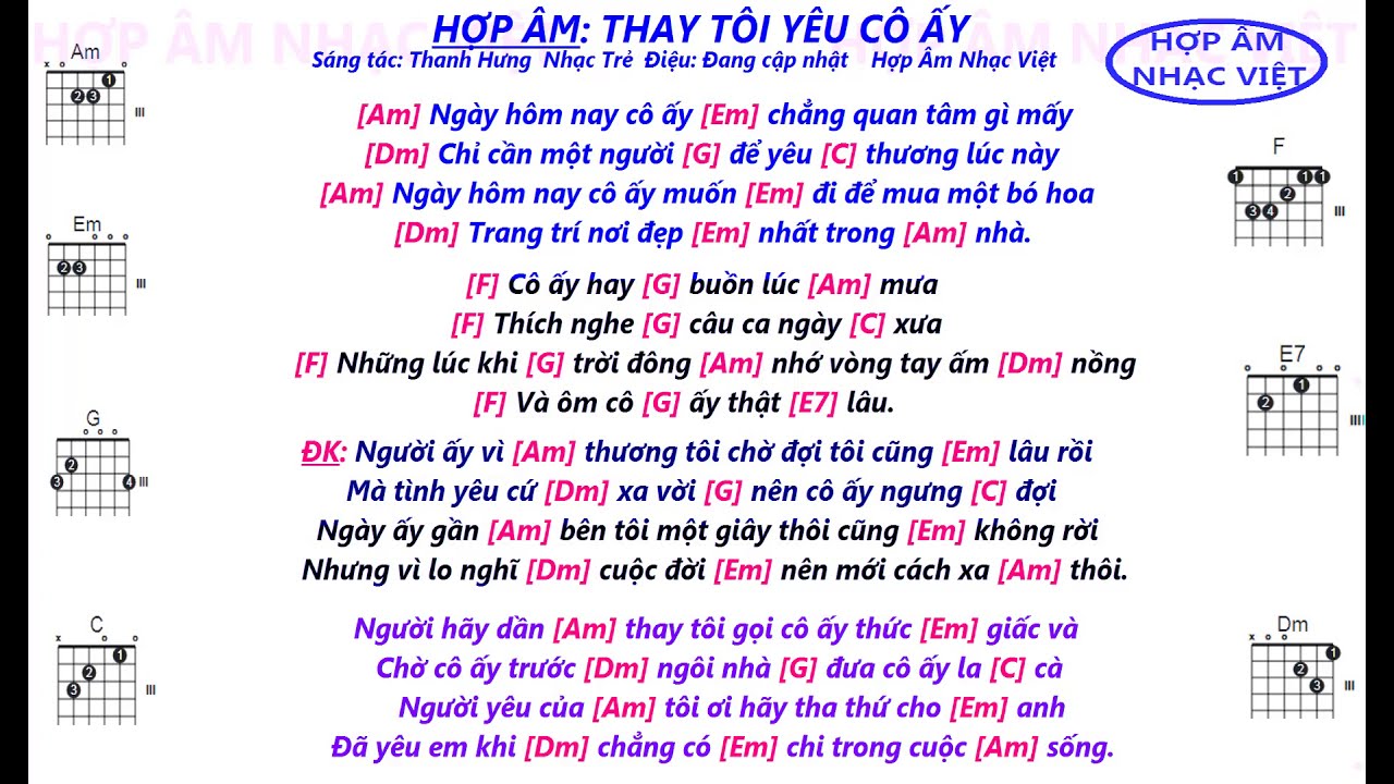 Thay tôi yêu cô ấy thanh hưng https www youtube. Lời bài hát thay tôi yêu cô ấy thanh hưng liên tục được cập nhật đầy đủ các thông tin về nhạc sĩ ca sĩ thể hiện năm sáng tác mp3 cũng như video clip youtube tại loibaihat biz. Thanh hưng music arrangement. Ghi chú về lời bài hát thay tôi yêu cô ấy.