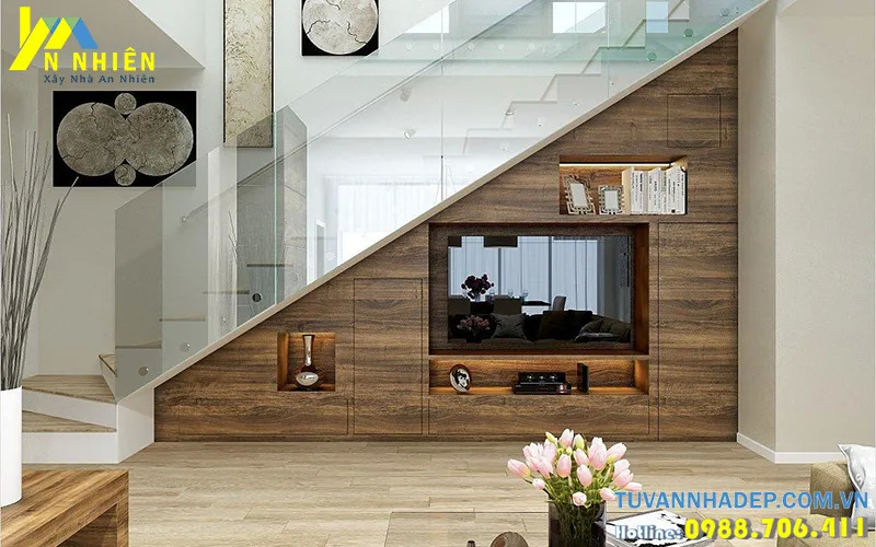 Thiết kế cầu thang. Thiết kế tận dụng gầm cầu thang làm phòng ngủ nhỏ xinh hấp dẫn. Trong kiến trúc nhà dân dụng hiện nay cầu thang có kích thước chuẩn thường từ 0 9m đến khoảng 1 2m đối với nhà lô phố và 1 5m hoặc lớn hơn đối với công trình thiết kế biệt thự nhà ở cao cấp. Cầu thang là nơi dẫn khí từ tầng này lên tầng kia lên phải thiết kế rộng rãi sáng sủa. Tránh chọn màu đỏ cho cầu thang bởi điều này mang lại những bất hạnh nghiêm trọng.
