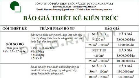 Bao Gia Thiết Kế Kiến Truc Va Nội Thất Năm 2018