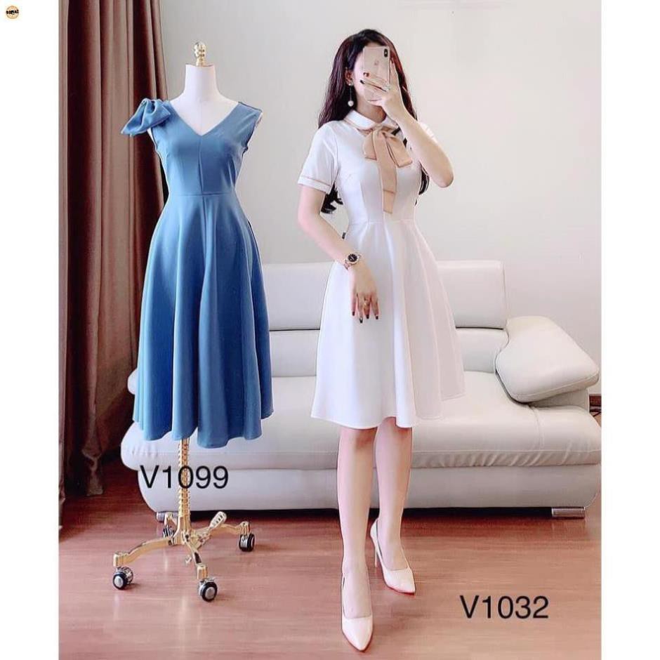 đầm Xoe Cổ Trụ Cột Nơ Hang Thiết Kế Thời Trang Nữ Emily Shopee Việt Nam