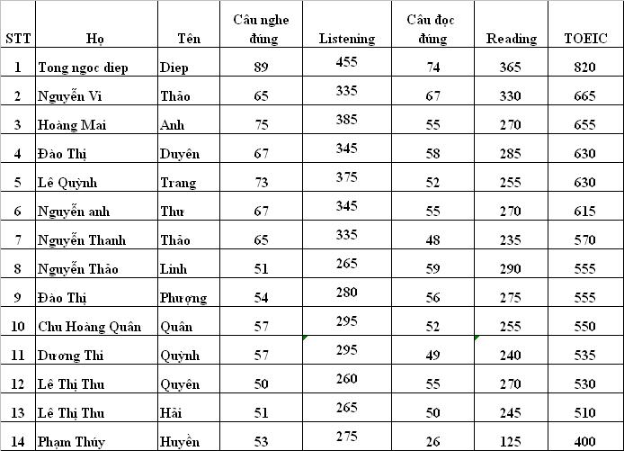 Kết Quả Thi Thử Toeic Miễn Phi Tại Toeic Academy Toeic Academy