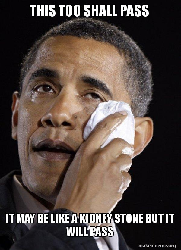 This Too Shall Pass It May Be Like A Kidney Stone But It Will Pass Crying Obama Make A Meme