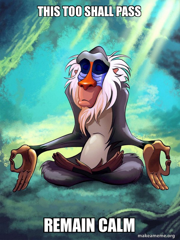 This Too Shall Pass Remain Calm Rafiki Meditating Lion King Make A Meme