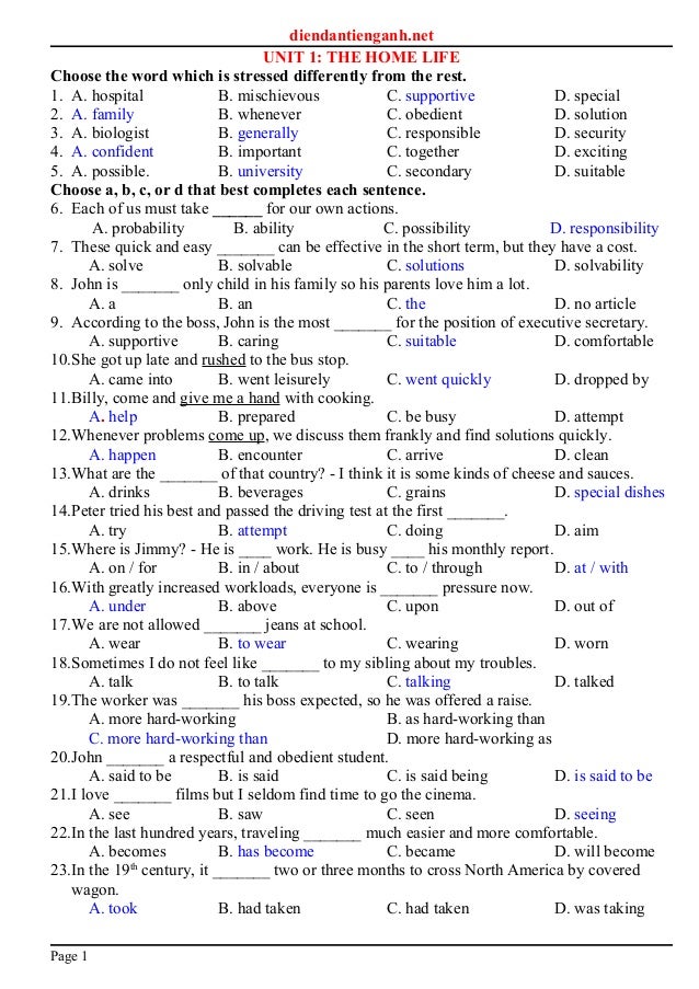 Tổng Hợp Bai Tập Unit 1 Lớp 12 Home Life Co đap An Bai Tập Tiếng Anh Lớp 12 Unit 1 Co đap An Vndoc Com