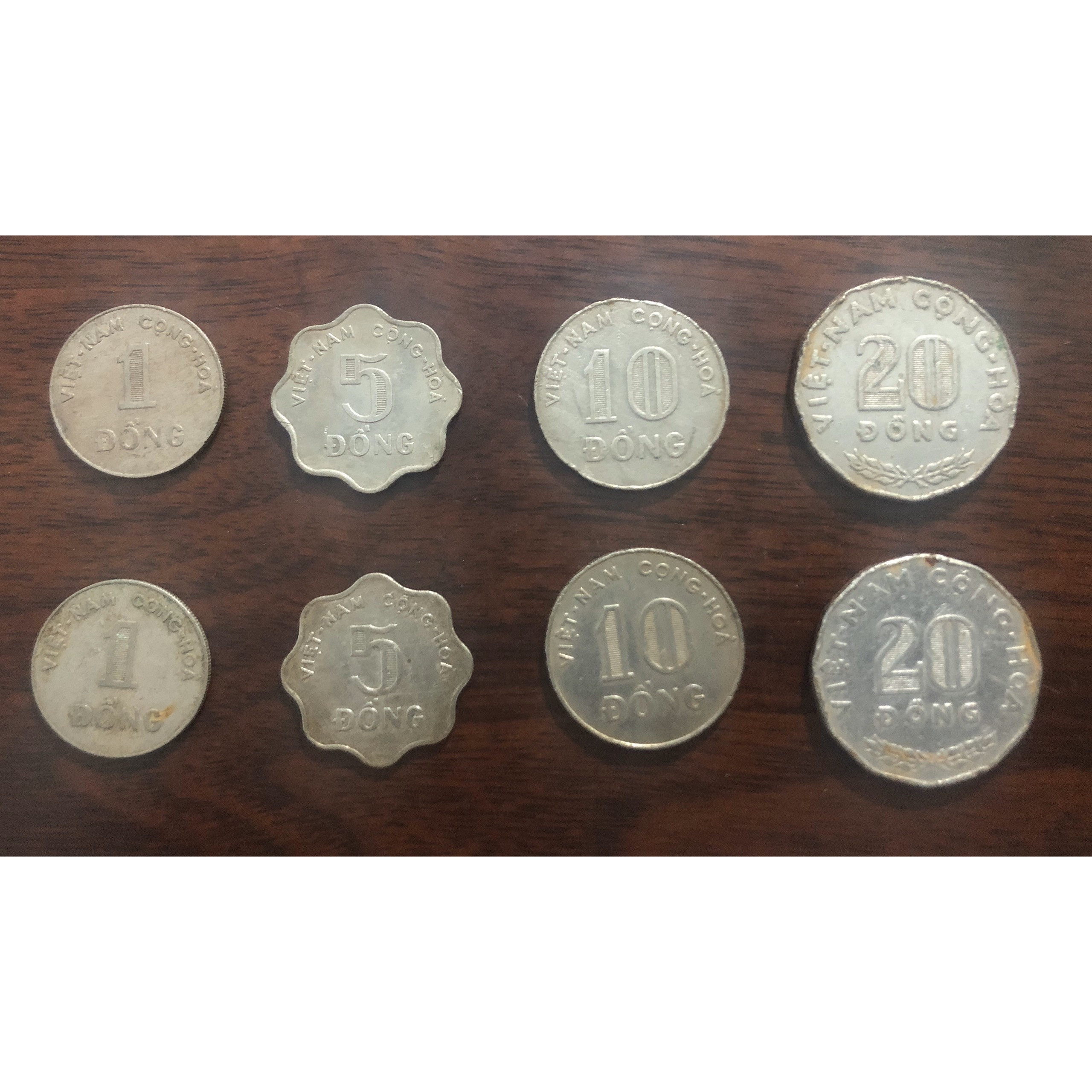 Thegioitien vn chuyên bán bộ tiền việt nam cộng hòa từ 1955 lần 1 1955 lần 2 1964 bộ tướng 1966 hoa văn 1969 bộ thú 1972. Ngoài mệnh giá 2 đồng được làm bằng chất liệu đồng thau các đồng tiền khác đều được làm bằng nhôm.