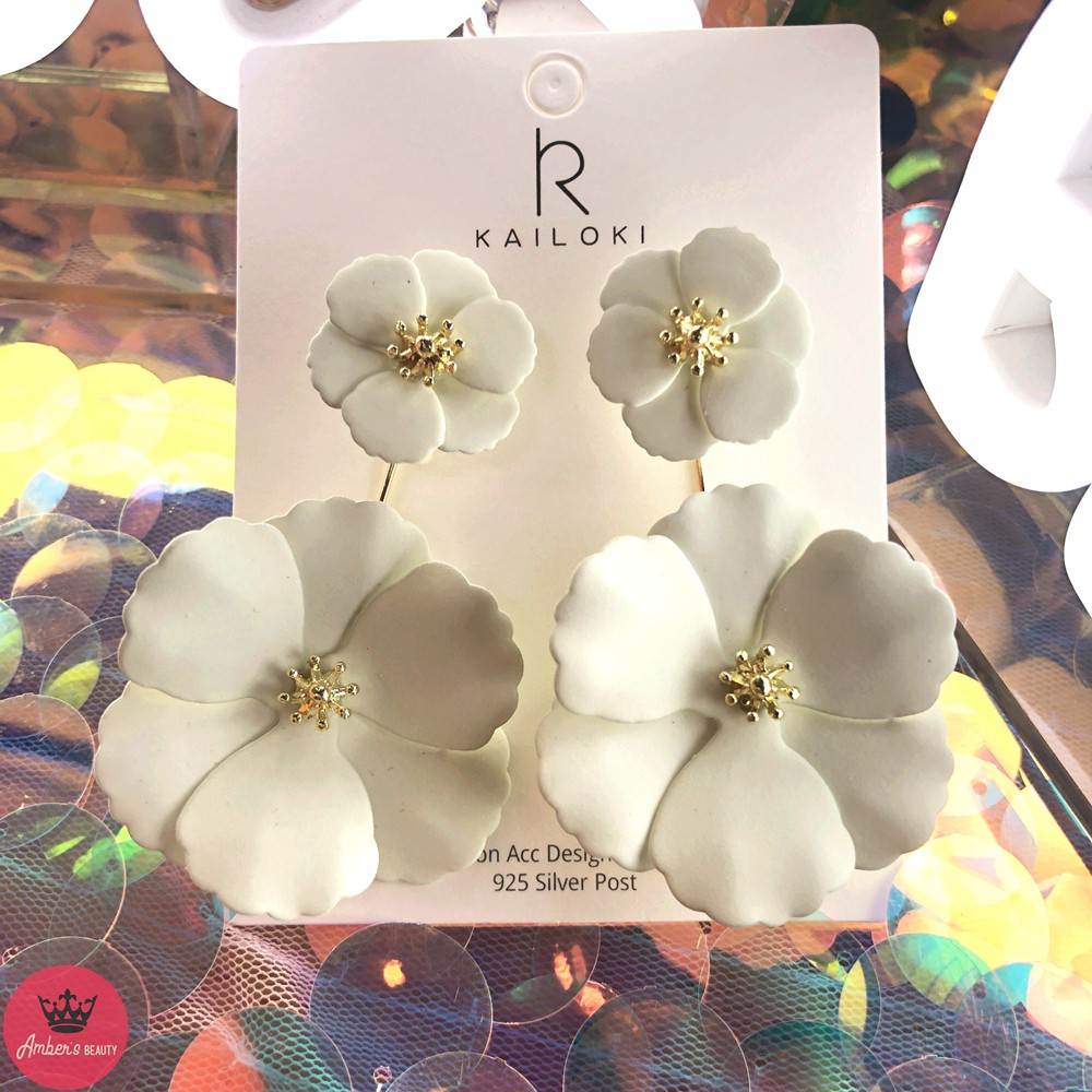 Bong Tai Khuyen Tai Nữ Dang Dai Kiểu Dang 2 Bong Hoa Trắng 6 Canh J0119 Shopee Việt Nam