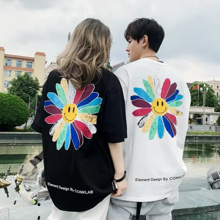 Ao Thun Form Rộng Tay Lỡ Nam Nữ Unisex Bong Hoa 7 Mau Ao Phong Rộng To Hinh Bong Hoa Mặt Cười Cực Hot Lazada Vn