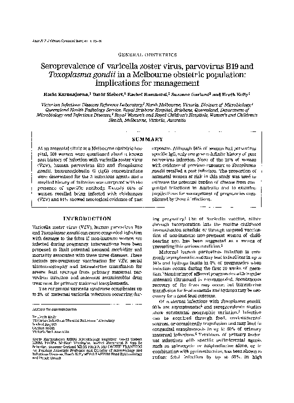 Pdf Seroprevalence Of Varicella Zoster Virus Parvovirus B19 And Toxoplasma Gondii In A Melbourne Obstetric Population Implications For Management Rachel Hammonds Academia Edu