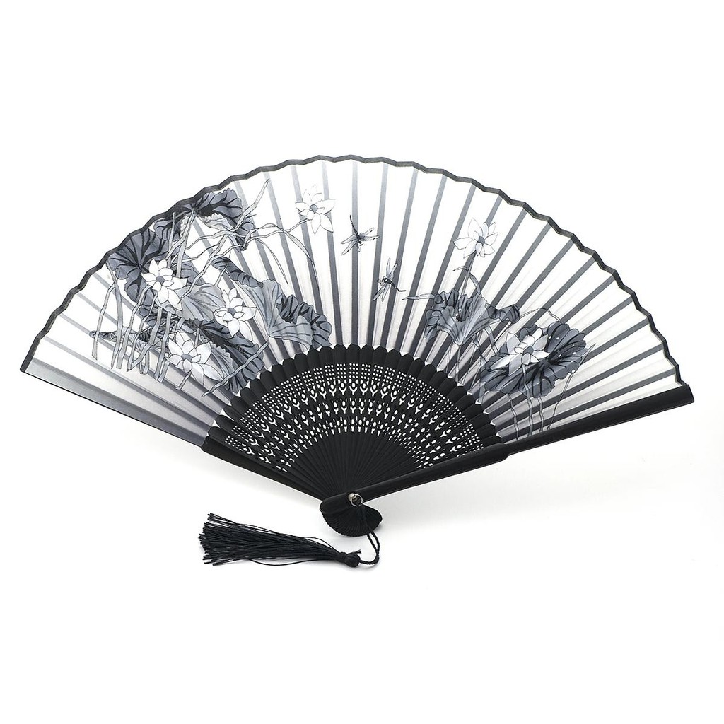 đen Tường Kiểu Y Hinh Quạt Giấy Họa Tiết Hoa Sen Trang Tri Phong Khach