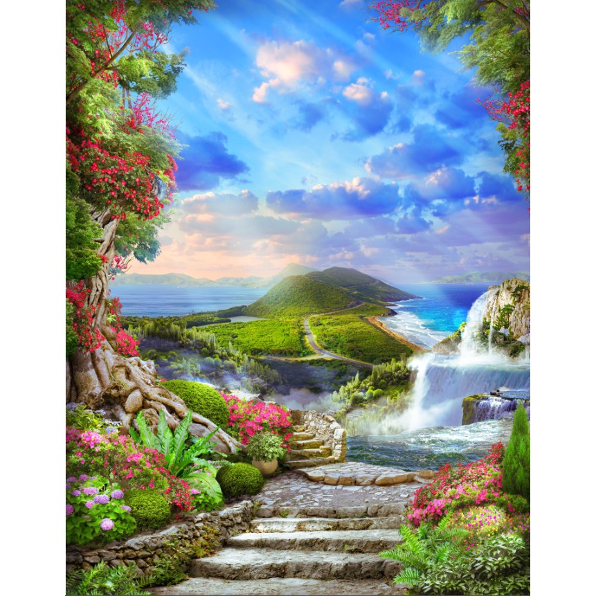 Tranh Dan Tường 3d đường đến Thien đường Biển Tranh Cảnh Biển