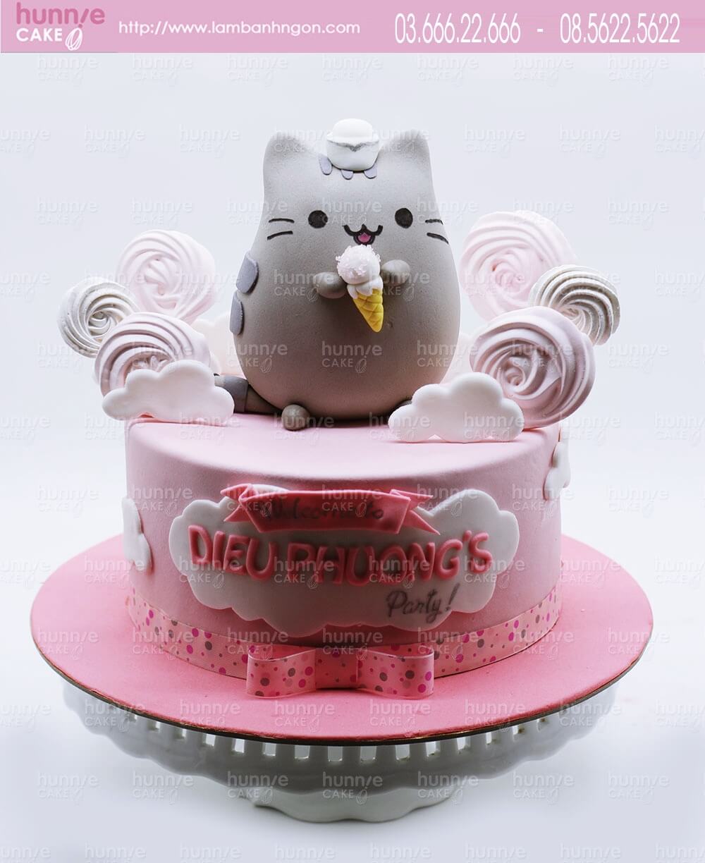 Banh Sinh Nhật Meo Pusheen Cầm Kem đang Yeu Tặng Sinh Nhật Be Gai Tuổi Mao 6141 Banh Fondant