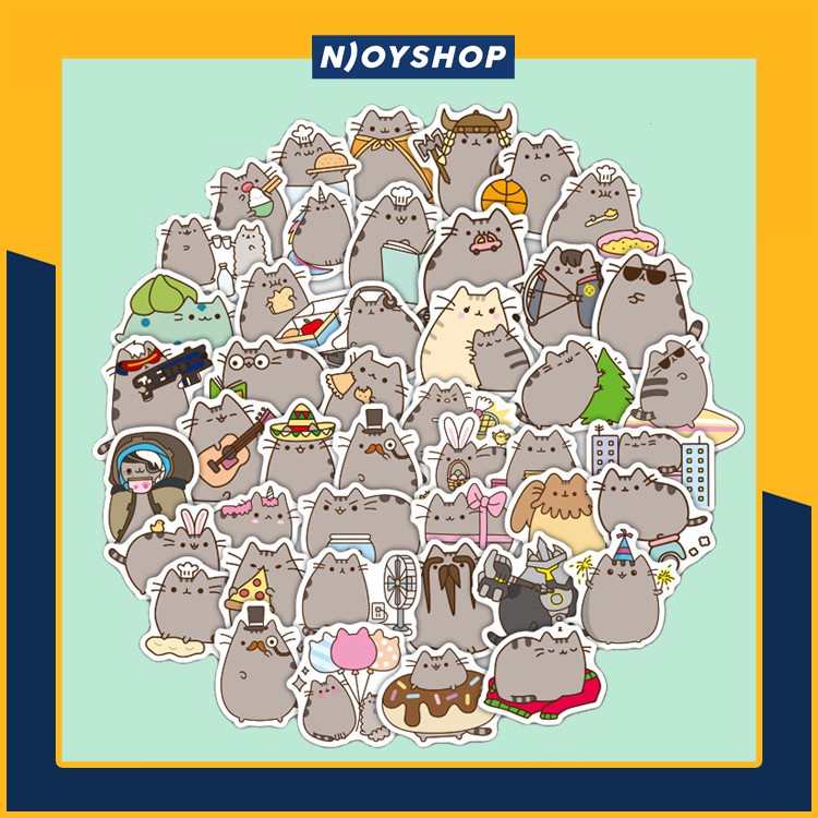Set 100 Sticker Meo Pusheen Cat Icon Messenger Facebook Chống Nước Dan Non Bảo Hiểm Laptop Vali Tủ Ban Học Xe May Shopee Việt Nam