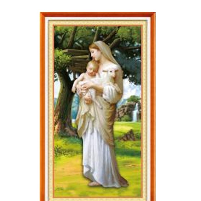 Tranh Theu Chữ Thập đức Mẹ Maria Bồng Chua Va Cừu Con A1095 42x74cm Chưa Theu Shopee Việt Nam