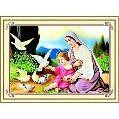 Tranh Theu Chữ Thập đức Mẹ Maria Bồng Con Lv3140 Kich Thước 40x52cm Tranh đinh 5d đa Han Quốc Gia Rẻ
