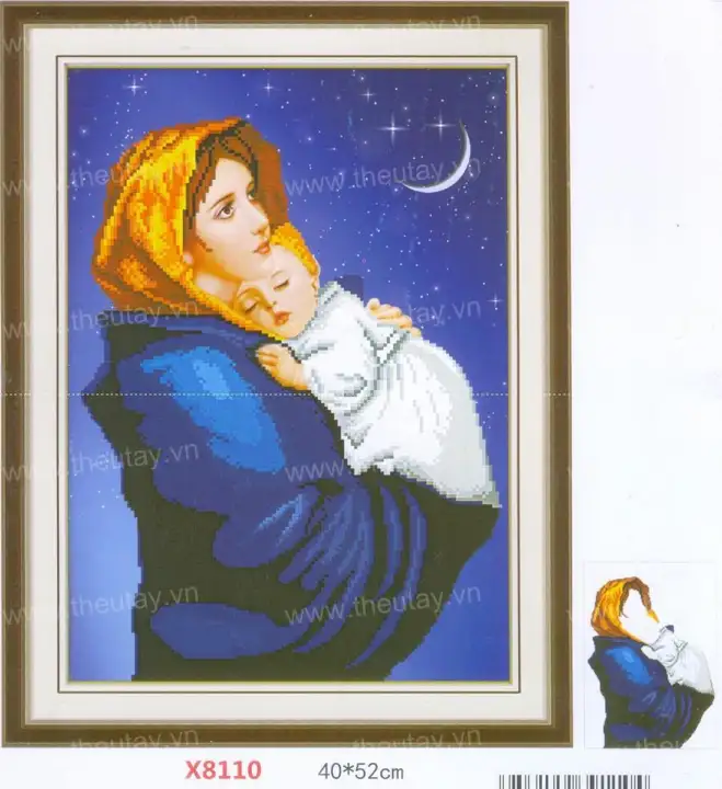 Tranh Theu Chữ Thập đức Mẹ Bồng Chua Tự Theu Tiki Vn