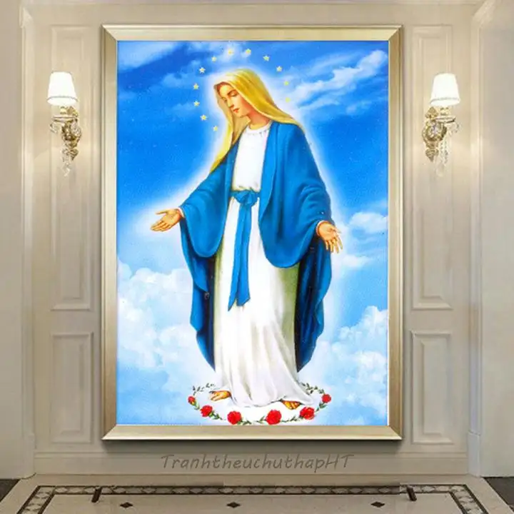 Tranh Theu Chữ Thập đức Mẹ Maria Lv3035 Kich Thước 43x51cm Tranh đinh 5d đa Han Quốc Gia Rẻ