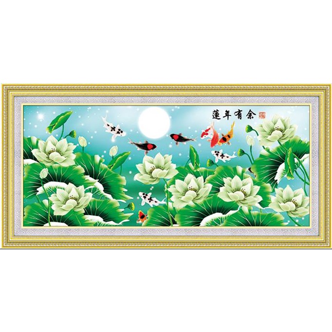 Tranh Theu Gia Hoa Vạn Sự Hưng Tranh Theu Ca Chep Hoa Sen Cao Cấp