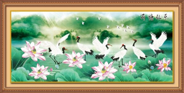 Tranh Theu Chữ Thập Dlhya779 Hoa Sen Va Chim Hạc 55 55 Cm Tranh Theu Chữ Thập Tranh Gắn đa