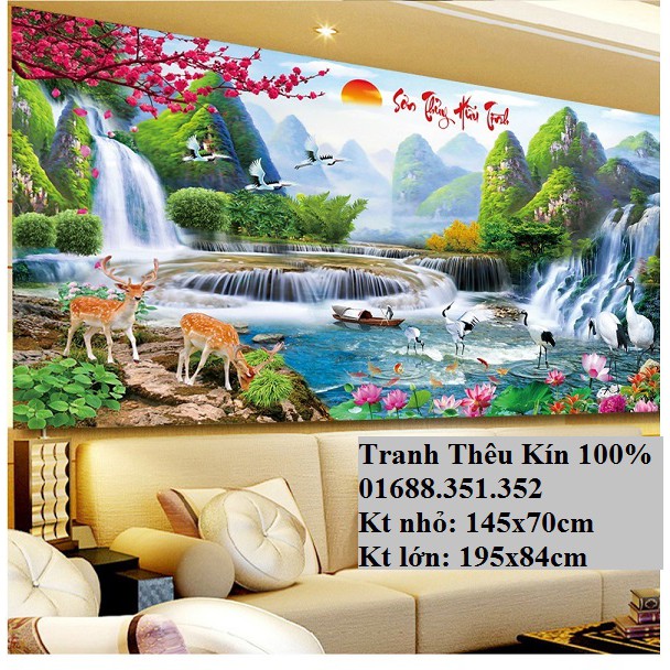 Tranh Theu Chữ Thập Phong Cảnh Lưu Thủy Sinh Tai Kich Thước Lớn 160x75 Cm Lv3324